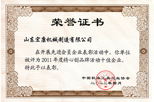 中国机床工具工业协会荣誉证书