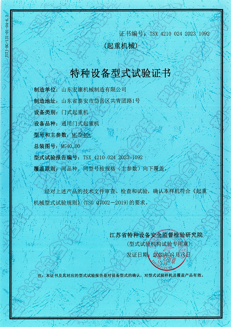 通用门式起重机型式试验合格证