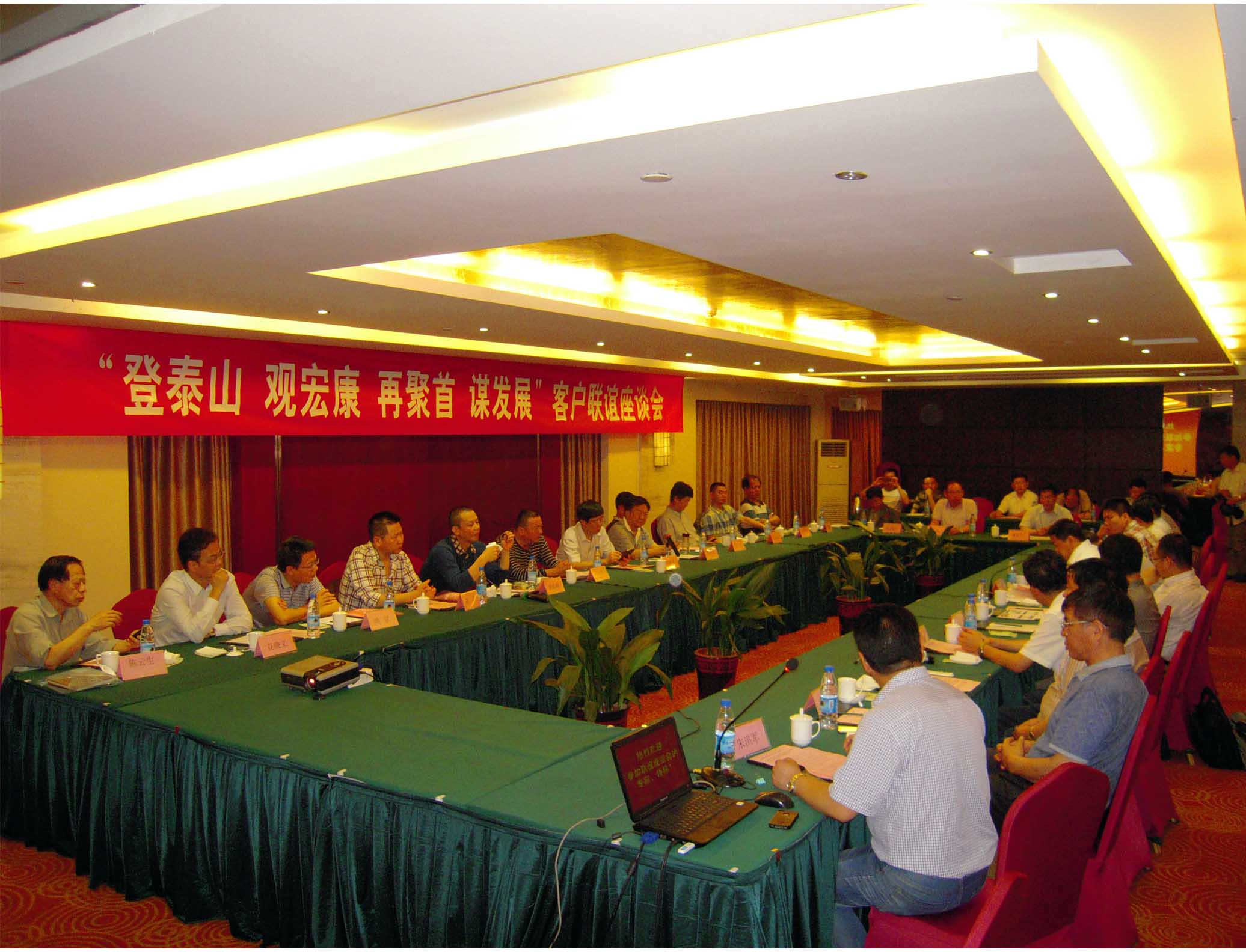 巍巍泰山展画卷,喜迎宾朋八方来。5月23日至25日,集团公司在东尊华美达酒店隆重举办“登泰山 观宏康 再聚首 谋发展”客户联谊座谈会。来自国内外的20余家重点客户企业领导及科研院所的专家领导们再次相聚泰山脚下,登临泰山之巅,畅叙友谊,共谋合作发展。集团公司董事长、总经理康凤明,常务副总经理潘宪平、副总经理朱洪军、副总经理朱洪臣等领导出席联谊会议。