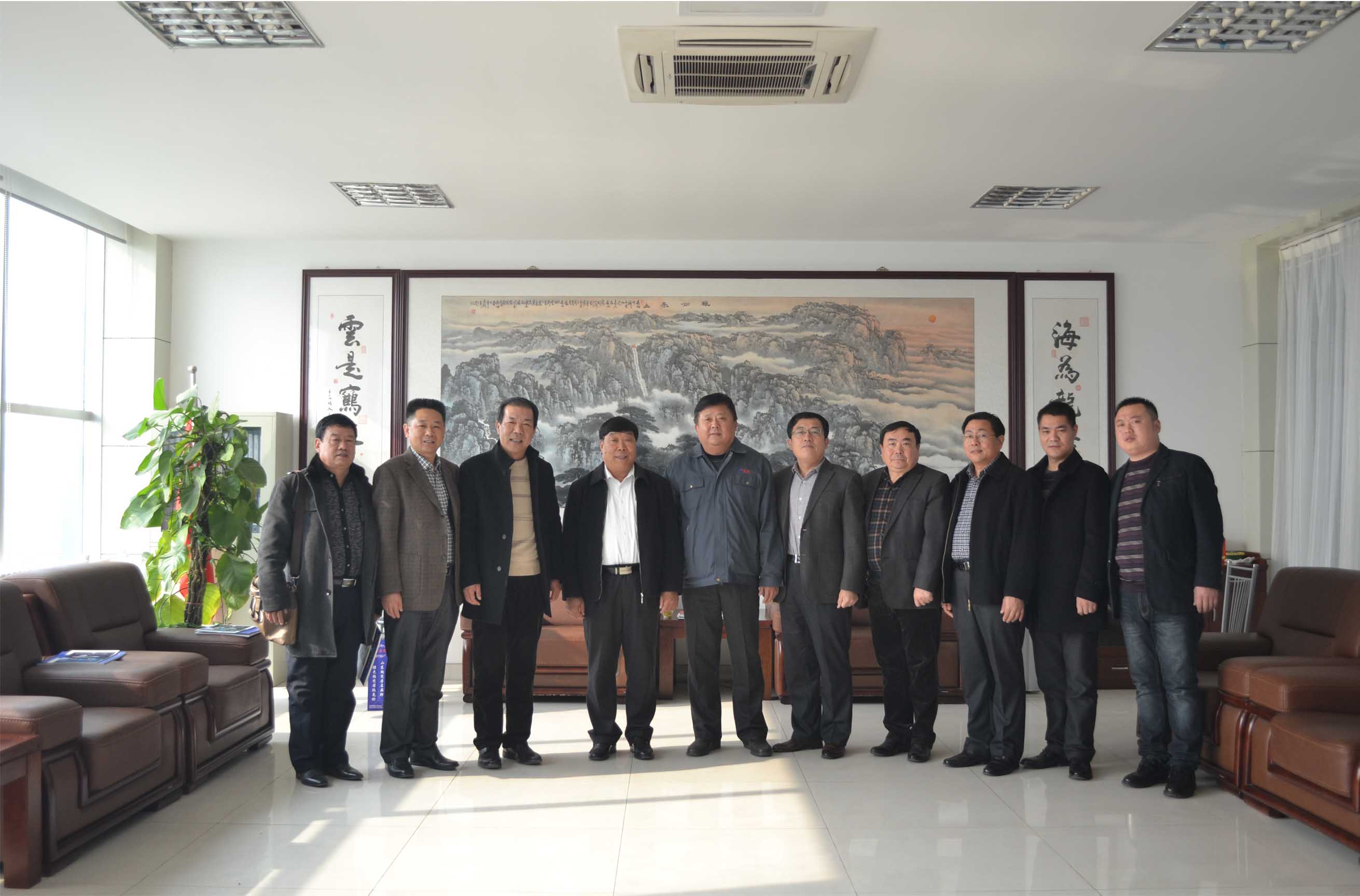 2014年11月21日,淄博市机械行业商副会长、秘书长张瑛明(右五)带领商会骨干企业负责人来集团公司进行友好交流。泰安市机械行业协会常务副会长、集团公司董事长、总经理康凤明主持与淄博市机械行业商会代表团进行了友好交流,泰安市机械行业协会副会长、泰安市农业机械研究所所长吴修文,秘书长、市农机所副所长赵文峰、集团公司常务副总潘宪平参加活动。